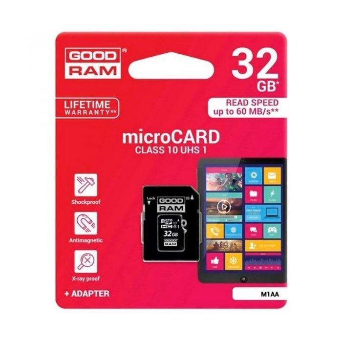 Карта пам’яті Goodram 32GB microSDHC Class 10 (M1AA-0320R12) — це надійне та універсальне рішення для розширення пам’яті смартфонів, планшетів, відеореєстраторів та камер. Завдяки підтримці інтерфейсу UHS-I, вона забезпечує вражаючу швидкість читання до 100 МБ/с, що дозволяє миттєво відкривати файли та швидко переносити дані на комп’ютер.