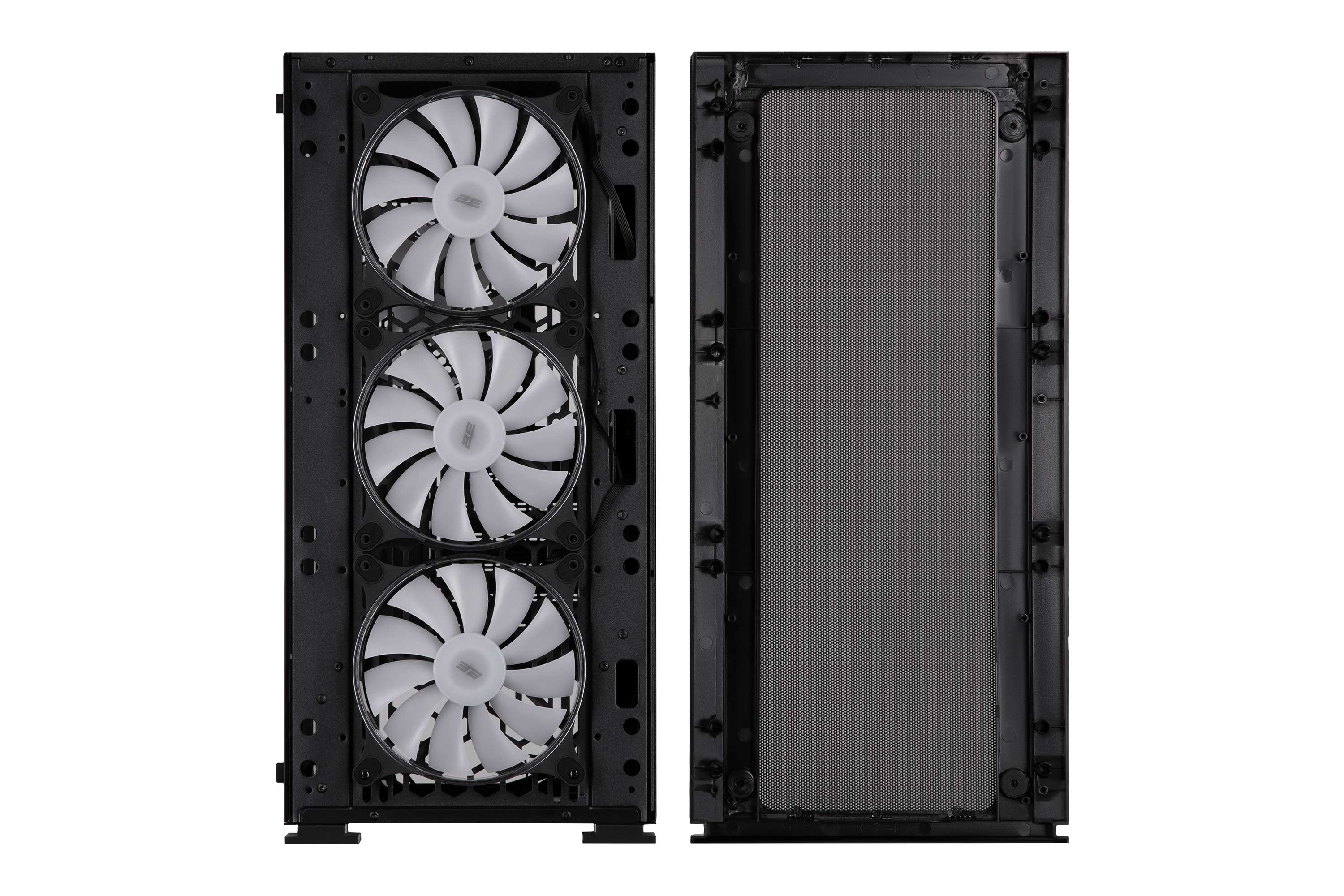 Внутрішній простір корпусу організовано раціонально, що спрощує складання як власноруч, так і у промислових умовах. Вентилятори підключені до контролера з дистанційним пультом, що дозволяє легко керувати підсвічуванням та швидкістю обертання, забезпечуючи комфорт і стильну ілюмінацію для ігрової системи.