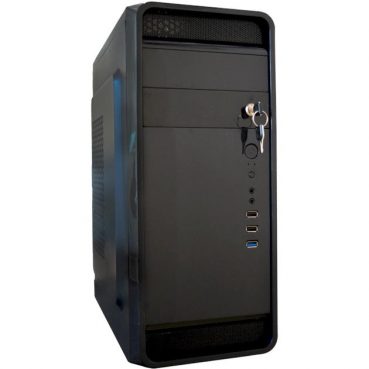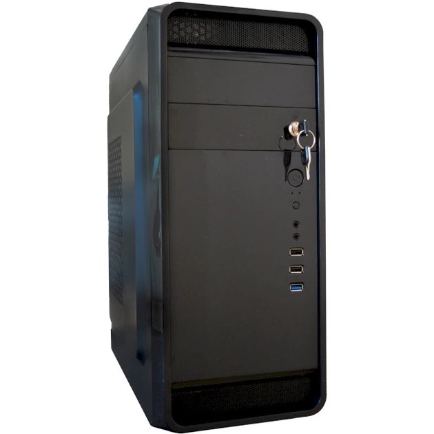 На передній панелі розташовані USB 3.0, USB 2.0, роз’єми для навушників та мікрофона, що забезпечує зручне підключення периферії. Корпус виготовлений із сталі та пластику, має розміри 405×350×175 мм та вагу близько 2.3 кг, що робить його компактним і універсальним варіантом для робочих і домашніх конфігурацій.