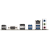 Для накопичувачів передбачено M.2 слоти з підтримкою NVMe SSD та кілька SATA 6 Гб/с портів, що дозволяє під’єднати як швидкі твердотільні диски, так і традиційні жорсткі диски. На задній панелі розміщені USB‑порти різних стандартів, Ethernet LAN, аудіо виходи та відеовиходи (HDMI/D‑Sub) для використання із процесорами з інтегрованою графікою, роблячи плату універсальною для домашніх, офісних і мультимедійних збірок.