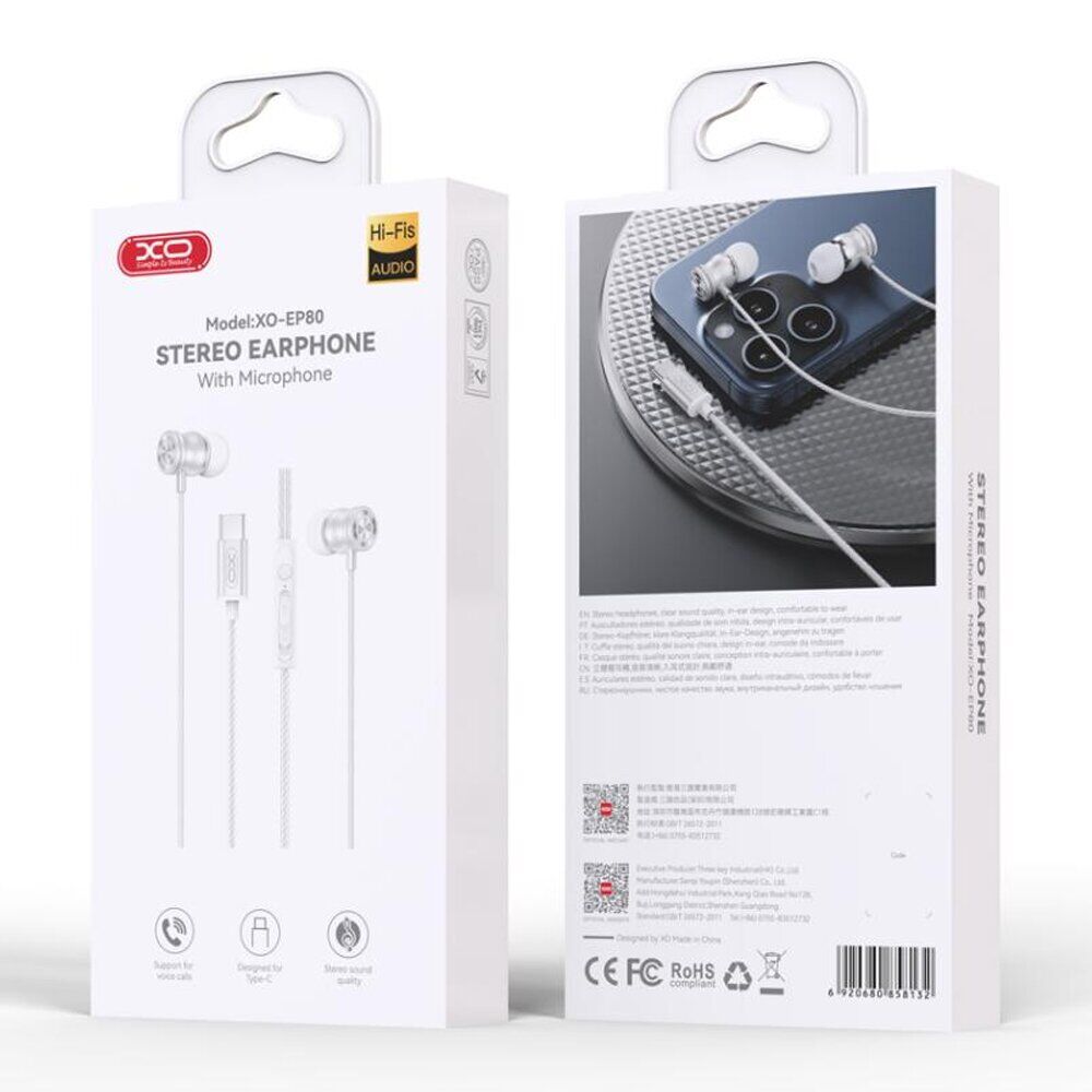 Навушники XO EP80 White (Type‑C) — стильна і зручна гарнітура з роз’ємом USB‑C, створена для сучасних смартфонів, планшетів і ноутбуків без 3,5 мм гнізда. Вони забезпечують чіткий і детальний звук для прослуховування музики, подкастів і дзвінків.